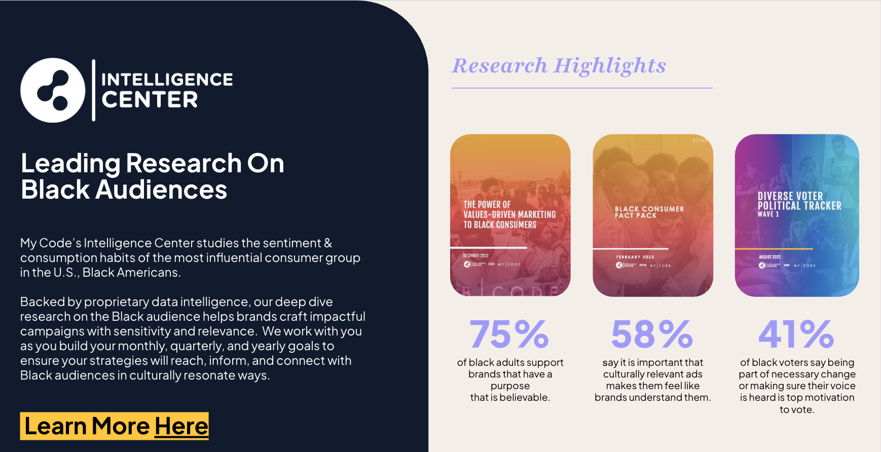 The study became a cornerstone of My Code’s cultural marketing POV and a strategic catalyst for product evolution, client partnerships, and GTM storytelling. It elevated My Code’s position as a thought leader in multicultural marketing and provided a measurable framework for brands seeking to engage Black audiences with authenticity and purpose.